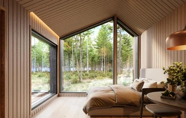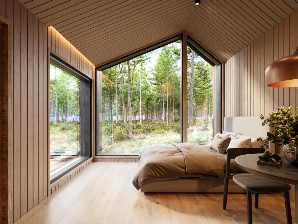 Large windows open up to panoramic lake views that change with the seasons. Unwind in your private hot tub and let the silence of nature surround you. Every detail is designed for comfort and relaxation. This is a peaceful retreat without distractions.