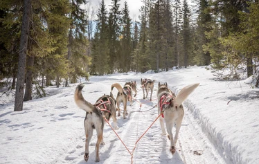 In a half an hour husky sled ride you get to be a dog driver for your own team of huskies. You will guide your huskies to a route with other groups and experience the fun of a ride. The journey with the huskies will take you to a winding path in to the forest. We can promise you, you will feel the speed in the downhills. Just remember to hold tight onto your sled!