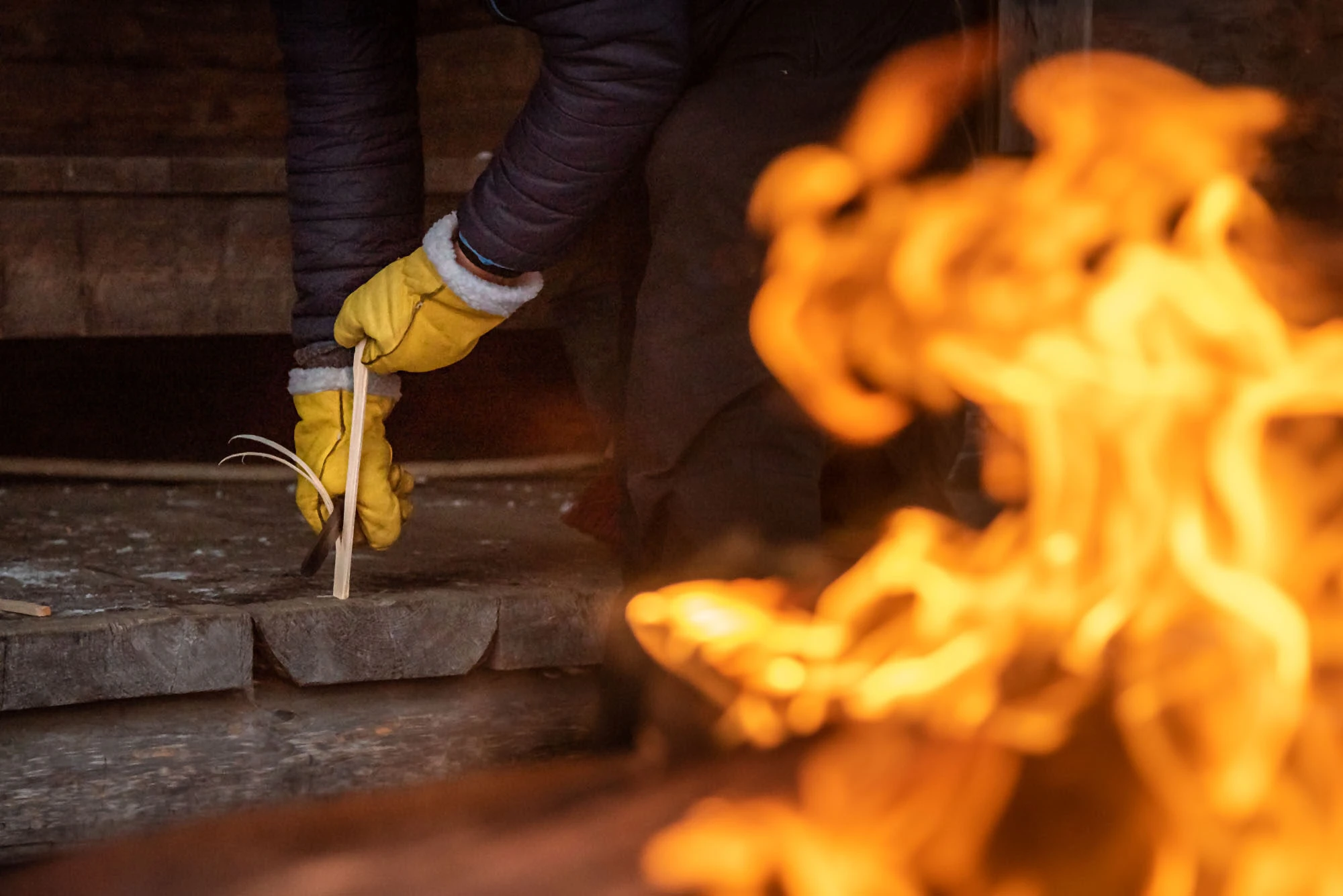 Ilta alkaa lyhyellä ajomatkalla erämaisen rauhalliseen paikkaan, jossa sytytämme nuotion perinteiseen kotaan tai laavuun. Voit nauttia lämmintä marjamehua ja makkaraa, jonka opas paistaa avotulella. Tunnelma on rauhallinen ja lämmin. Täydellinen hetki rentoutua ja odottaa taivaan syttyvän valoon.